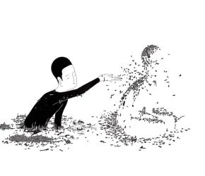 சாலை முழுக்க விதைக்கத் தொடங்கினான்.