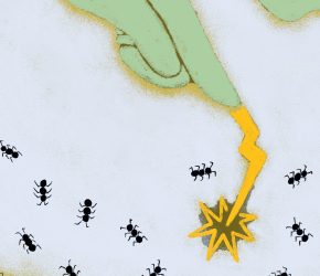கைவிடப்பட்ட அந்த மாட்டுக் கொட்டகைக்குள் இன்னும் சாணத்தின் வீச்சமிருந்தது. அந்த நண்பகலில் ஆங்காங்கே கீற்றுத் துளைகளின் வழித் தரையிறங்கிய ஒளித்தூண்கள் அக்குடிசையைத் தாங்கியிருப்பதாய் ஒரு தோற்ற மயக்கம். குறும்பாண்டி குடிசையின் உத்தரத்தில் கட்டப்பட்டிருந்த கயிற்றின் மறுமுனையை பீர்பாட்டிலின் கழுத்தில் முடிச்சிட்டான். பின் அதை வலப்புறமாய் உந்தித் தள்ளினான். கடிகார ஊசலாய் பீர்பாட்டில் அசைந்தாடத் தொடங்கியது. அதைக் குறிவைத்த உண்டிவில்லின் இழுபட்ட ரப்பர் பட்டைக்குள் அனலில் வாட்டிய களிமண் உருண்டை. இரண்டு கண்ணாடிக் கோப்பைகளை ஒன்றிணைத்து குறும்பாண்டி உருவாக்கியிருந்த மணல்கடிகாரத்தில் காலம் சரியத் தொடங்கியது. நாங்கள் இமைகளை மூடாமல் மூச்சு விடவும் மறந்தவர்களாய் அனைத்தையும் கவனித்திருந்தோம். முடுக்கிய கவணிலிருந்து விடுபட்ட எறிகல்லோ காற்றைக் கிழித்தவாறு பாட்டிலைத் தாக்கிச் சிதறச் செய்தது. பான்பராக்கில் ஊறிய எச்சிலை உமிழ்ந்தவாறு சூரக்கிளி “வக்காலி யாருகிட்ட” என்றான். அடுத்த நொடியில் சூரக்கிளியின் வயிற்றுக்குள் உடைந்த பீர்பாட்டிலை குறும்பாண்டி சொருகியிருந்தான். நான் முதல் ஆளாய் குடிசையைச் சுற்றியிருந்த சீமைக்கருவேலம் புதர்களுக்குள் ஆடை கிழிபடுவதையும் பொருட்படுத்தாமல் பதறியோடினேன்.