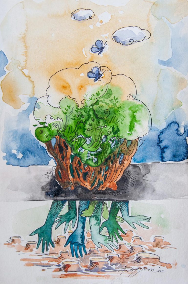 மண், மானுடம், கலை என்ற சொல்லாடல்களைத் தொடர்ந்து தங்கள் உரையாடல்களில் பயன்படுத்தியவர்கள் நாளடைவில் சில தேவைகளுக்காக அப்படியான பேச்சுக்களை நிறுத்தியிருக்கிறார்கள். சிலர் இன்றும் காண்கிற பொழுதுகளில் எல்லாம் அப்படியான பேச்சினை அல்லது தொடர்ச்சியினைத் தொடர்ந்த வண்ணமாகத்தான் இருக்கிறார்கள். ஓர் எழுத்தாளர் எப்படி எழுதவும் பேசவும் செய்கிறாரோ அதுபோல ஓவியரும் நிச்சயம் எழுதவும் வேண்டும் என்பதை அதன் தேவை கருதி நான் ஒப்புக்கொள்கிறேன். இல்லையென்றால் இலக்கியவாதிகளும் பேராசிரியர்களும் அல்லது ஓவியக் கலைஞர்களின் நண்பர்களுமே இங்கே விமர்சகர்களாக இருப்பார்கள். ஓவியம் (கலை) தொடர்பான விமர்சனத்தை அதனோடு தொடர்ந்து பயணிக்கும் ஓர் ஓவியர் முன்வைப்பதே சிறந்ததாகும் என்று கூறும் ஓவியர் அமிர்தலிங்கம் பள்ளிப் பருவத்திலேயே ஓவியம் வரையும் ஆற்றலை இயல்பாகவே பெற்றிருக்கிறார். குறிப்பாகப் படம் ‘வரைவது மகிழ்ச்சியைத் தருகிறது’ என்றாலும் சிலர் அதன்வழி ‘பணமும் புகழும் சம்பாதிக்கலாம்’ என்று சொன்னதைப் பொதுப்புத்தியில் ஏற்றி வைத்ததுமே காரணமாக இருக்கலாம்.