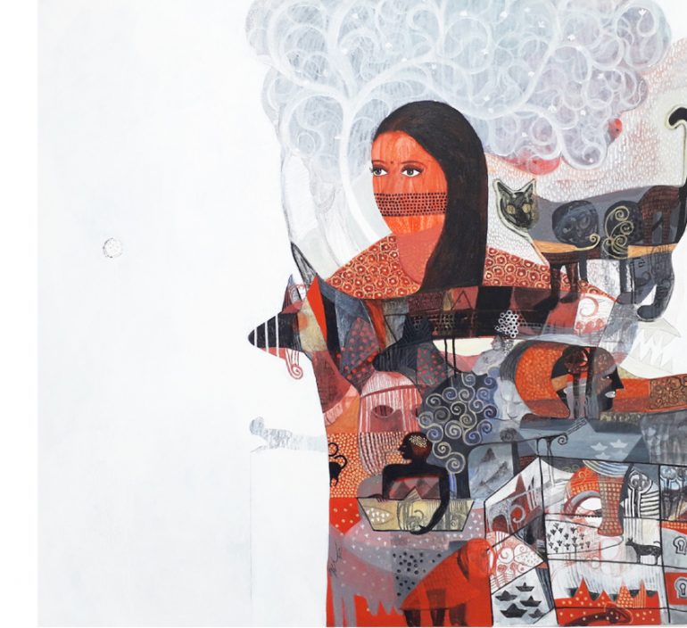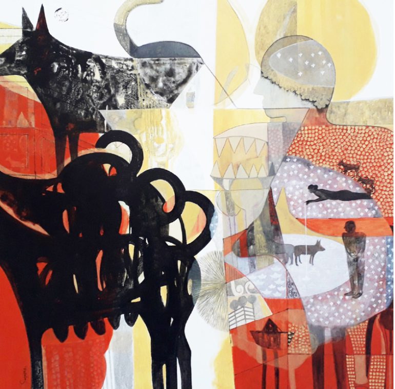 மனம் என்பது எண்ணற்ற அறைகளைக்கொண்டது. அது ஒருக்களித்த கதவுபோல் மெல்ல மெல்ல திறப்பதும் பிறகு இறுக்கமாகப் பூட்டிக்கொள்வதும் சாவியினைத் தொலைத்துவிட்டுத் தேடுவதும், பிறகு பூட்டியும் திறந்தும் விளையாடுவதுமாகத் தனது ஓவியக் கட்டுமானத்தைக் கேன்வாசிற்குள் (கித்தான்- வரைதிரை) மிக அர்த்தமாக, ஆழமாகப் பதிவு செய்து தனக்குள்ளும் பார்வையாளர்கள் மத்தியிலும் ஒரு சுய உரையாடலை நிகழச் செய்கிறார்.